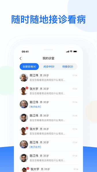 为医务人员搭建在线咨询室,为患者提供在线咨询、视频跟进、在线处方等医疗服务。