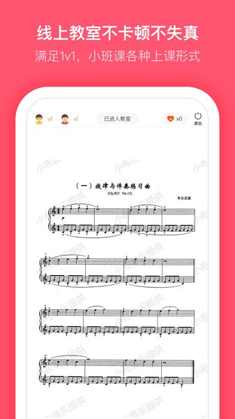 提供专业的线上音乐教室、海量乐谱库、双向高质量音视频传输,满足广大师生的需求。