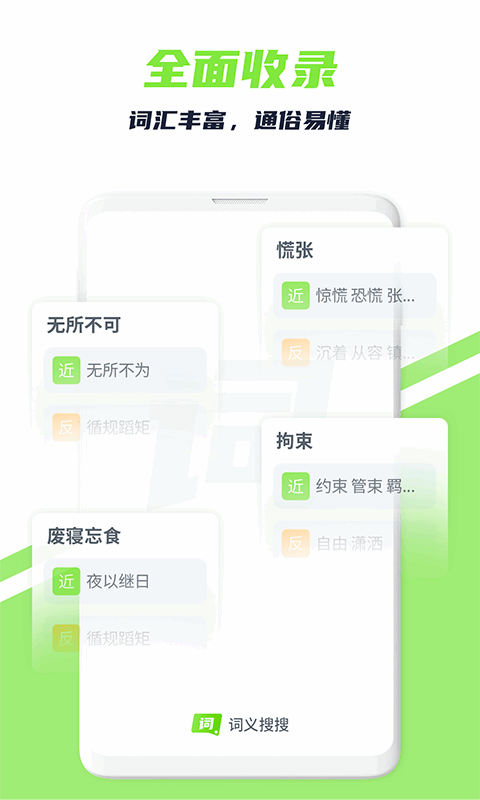 词义搜搜是一款学习近义词和反义词的搜索工具,能帮助你快速查询和掌握词语知识,让学习更轻松。简介的搜索功能能让学习变得更加方便和高效。