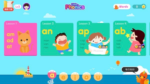 Level2是元音字母的认知拼读,同时记忆100+单词;