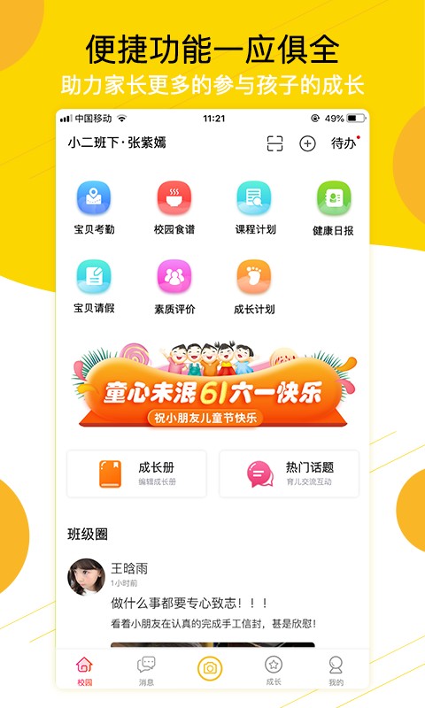便捷功能一应俱全,助力家长更多的参与孩子的成长