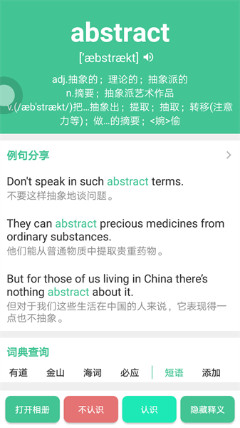 4.单词、例句语音朗读:结合场景化的例句,使记忆单词更深刻,不容易忘记。