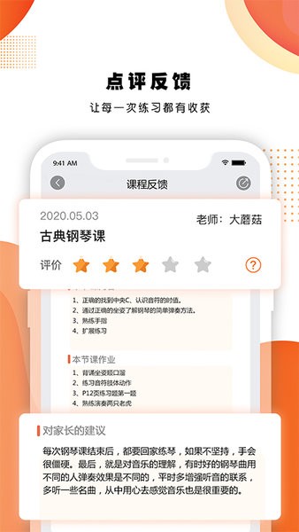 app里还有丰富的音乐资源和完善的教学体系,随时随地都能学习,老师也能随时在线解答问题,真的很方便!特别是“成长记录”功能,可以跟踪学习计划,还能记录下自己的进步瞬间,感觉特别有动力。再加上“音乐社圈”,能和其他学生交流分享,一起进步,这种社区感也很棒。