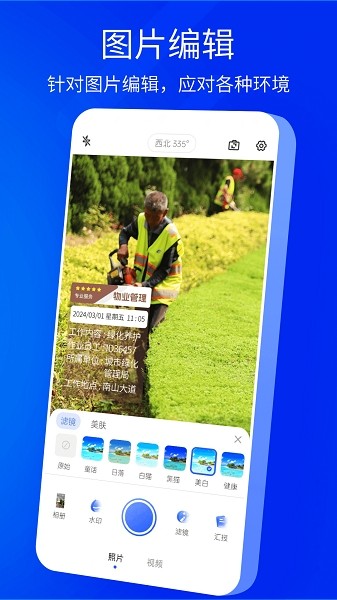 时间地点打卡水印、工程水印、物业管理、执勤巡逻、会议记录、装修记录、环境治理、物流配送等众多模板及使用场景,真实还原多种工作和生活场景,满足不同相机用户对水印样式的需求。