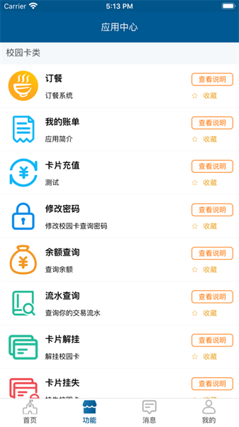4、为校园用户提供专业、全面的移动一卡通服务,失卡招领、校园卡在线申请、校友注册等服务。