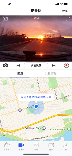 2、实时直播:通过视讯云车连接行车记录仪后,可以实时直播当前正在录制的内容;
