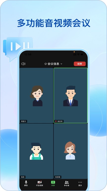 这个app还支持用车申请、考勤统计和组织培训,简直是企业办公的一站式神器。音视频会议也很赞,随时随地都能开,还能屏幕共享,完全不耽误事。即时通讯功能也特别强大,文字、语音、图片、视频都能发,群组最多还能千人在线聊天,简直太方便了。