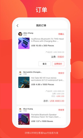 - 随时管理你的订单,实时了解订单进展,并进行报价及商品发货;
