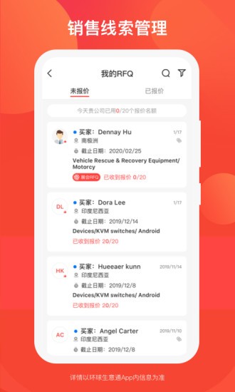 2、针对优质已核实买家的匹配询价,抢先报价,获取商机。