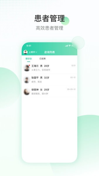 4、为患者用户提供了在线建档、预约挂号、在线问诊等功能,节省患者的就医时间,非常的方便。