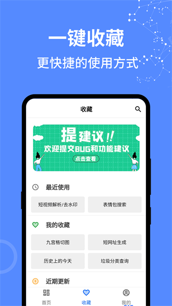 二次元工具箱app,一款功能全面的手机工具箱软件,平台上有大量的小工具提供给大家免费使用,且涉及的类型丰富多样,可以满足大家日常的各种需求,整个软件占用内存也小,界面清新干净,是大家必备可少的手机工具箱神器,有需要的朋友快来下载用起来吧~