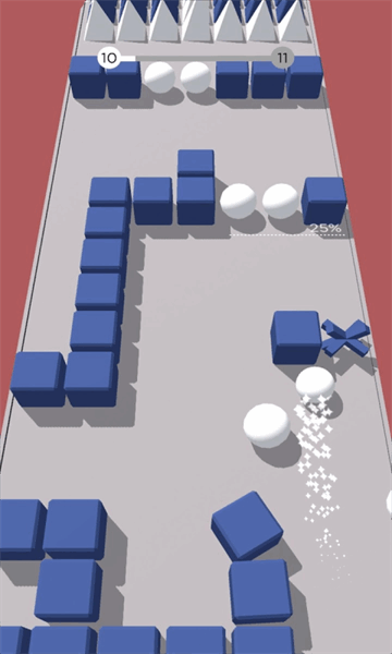 3、游戏操作非常简单,就是发射你的球球去撞击3D平面中相同颜色的设置物。
