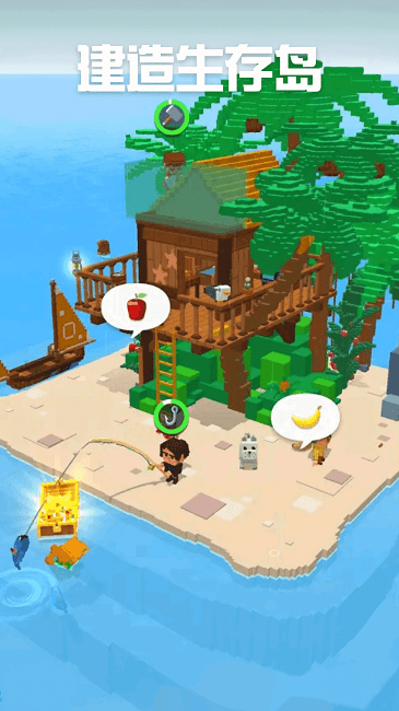 建造生存岛手游一款建造生存游戏,游戏中,由3D模拟海上孤岛,玩家需要操作角色击败僵尸,海盗,砍伐树木,获得金币,才能购买足够资源搭建房屋,遮风挡雨,生存下去!