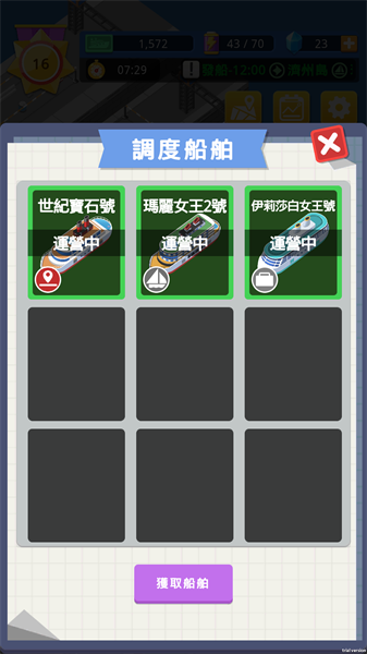 3、随着业务的扩展,您将解锁更多航线,并且不要忘记收集更多稀有船只并对其进行升级,这将大大增加港口利润。