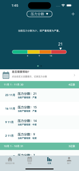 -- 记录和跟踪你的压力分数(莫迪亚斯压力)