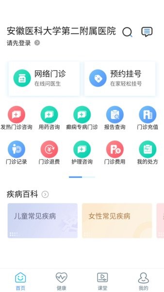 安徽医科大学第二附属医院―公众端将医院信息系统整合延伸到手机,形成一个高效、实时、动态的医疗信息交互平台,为患者提供便捷的就诊服务,实现在线咨询(图文咨询、视频咨询、电话咨询)、预约挂号、门诊记录费用查询、报告单查询、充值就诊卡等功能,改善患者就医体验,提高医院工作效率。
