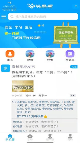对家长来说,这个app也能帮忙管理孩子,还能看到学校的活动和通知,促进家校互动。特别是天气预报提醒这种小细节,虽然看起来不起眼,但确实挺贴心的。还有老师能用它发通知和管理班级,工作效率肯定提高不少。
