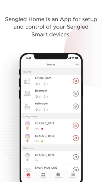 sengled home安卓版app可以在手机上控制sengled旗下的智能家居产品,包括智能灯泡、智能床、浴缸、插座等,可以同时添加多个智能产品,打开软件就能看到每个设备的实时运行状态,可以一键控制开关和调节参数。