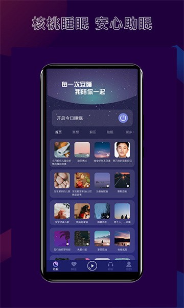 核桃睡眠app是非常好用的一款手机助眠类型的软件,在这里用户们能够找到帮助自己快速睡眠的功能,让自己能够更好的进行睡眠,有更好的睡眠质量,帮助用户门恢复自己,超级的好用。