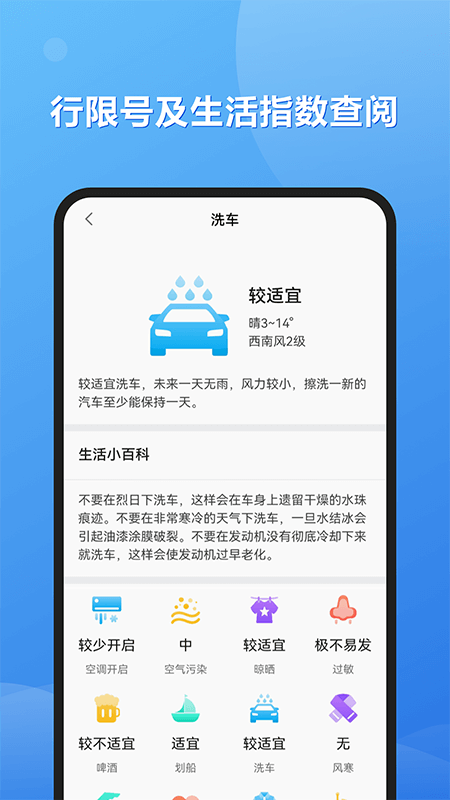 晴天雨天各项指数综合看,根据天气轻松安排户内外活动。