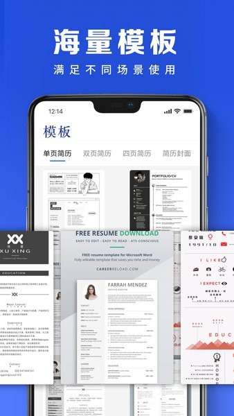 word简历模板手机版是有着很多专业的简历模板的软件,大家在有需要的时候可以在这里直接下载,还能够解锁全新的服务,上传自己设置好的简历模板还有很多的信息可以获取,操作简单又方便!