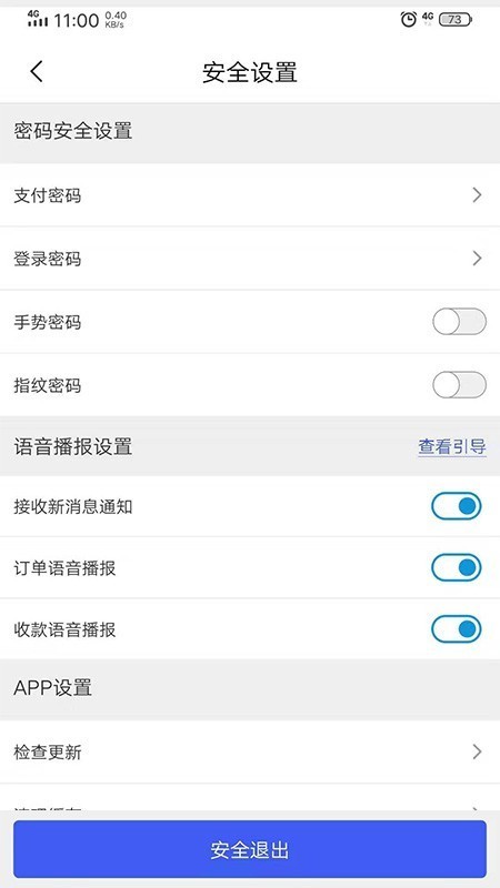 担心自己账户信息泄露的话即可设置支付、登录、手势、指纹密码;