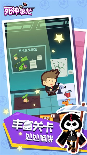 死神很忙是一款特别有意思的悬疑解谜闯关类游戏,游戏采用Q版设计,玩家将在这里化生为一名死神。你将会遇到各种各样的关卡,困难重重,你需要利用游戏中提示,把整个剧情连接起来,祭出镰刀完成收割,各种惊险刺激的剧情任务等你来挑战!