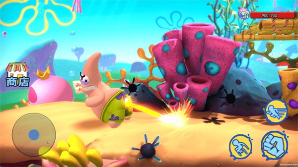 不一样的比奇堡冒险之旅开始了。在这个海岛底下,有一个神秘小镇。在这个小镇里,来了一群邪恶的机器人。你要守卫这比基尼海滩乐园,在海底世界完成各种不同的任务。还可以好好地探索这个小镇,看看里面到底有什么好玩的东西。可以在短的时间内,尽情的展现自己的力量,战胜一切的对手来保卫自己的海底家园。