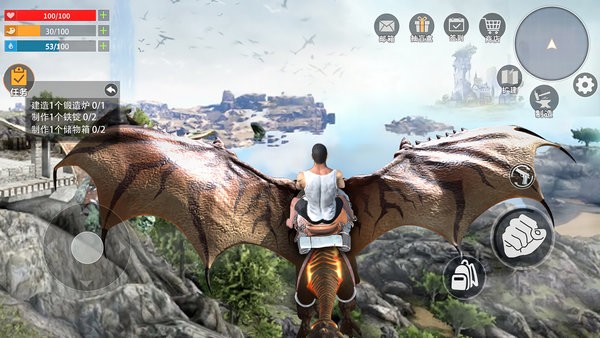 2、制作武器和搭建基地,驯服地图内的野兽。