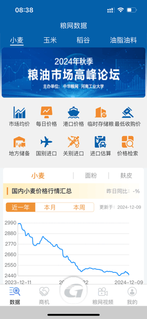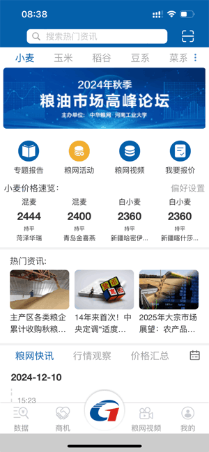 中华粮网大数据平台是针对全国粮油行业提供的数据发布分析软件,不仅实时更新相关热点资讯,市场行情变化一手掌握,供求信息、粮油价格等数据一目了然,还提供专业报告分析,轻松查询了解,更有视频直播,粮网讲堂知识学习,好用实用!