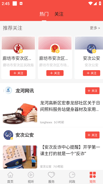 与廊坊市安次区政府部门合作,提供各类政务办理功能,如社保查询、公积金提取、居住证办理等,方便居民在线办理业务。