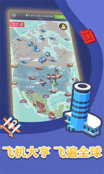 --放置打造一个惊人的机场,购买更多的飞机,飞行路线遍布全世界,处处都是商机和财富。