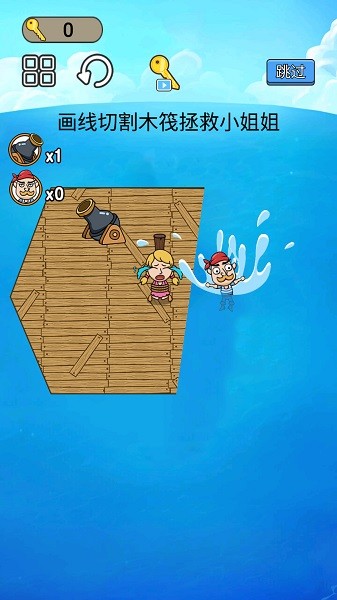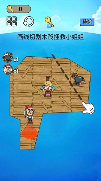 益智烧脑画线清除危险物,救救小姐姐。趁着坏蛋转身不注意,给木筏来一刀让坏蛋掉进水里。注意别被坏蛋发现了!