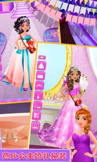 芭比公主婚礼换装是一款换装类游戏软件爱你,这是一个完全免费的游戏。在这里你需要帮助3位公主装扮,挑选婚纱,帮助各位公主搭配漂亮的珠宝和首饰,然后帮助她们之后婚礼海报。