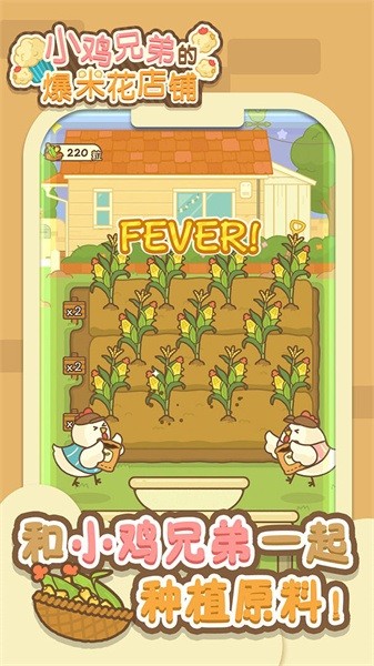 小鸡兄弟的爆米花店铺游戏是非常可爱的休闲经营类型的手游,在这里玩家们需要和小鸡兄弟们一起经营着自己家的爆米花店,需要自己种玉米、收割、制作成爆米花等等,让玩家们能够享受到超好玩的经营。
