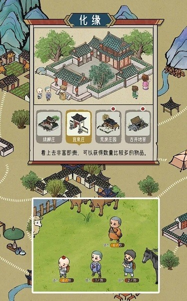 下山化缘,便有机会获得丰富的道具和相关事件,从而更好的建设寺庙。