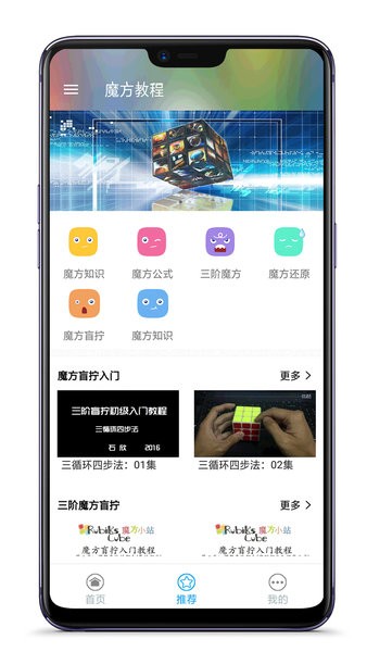 魔方教程app是可以让小伙伴们轻松学习魔方相关的课程的软件,界面上有着很多经典的魔方视频课程,从基础入门级别到大师碾压级都是有的,让大家可以快速的找到合适的魔方教学课程来学习相关知识!