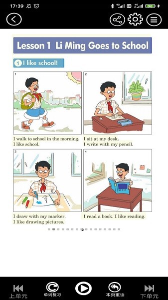 所有单词、课文都为真人高 清发音,并且可跟读,可点读