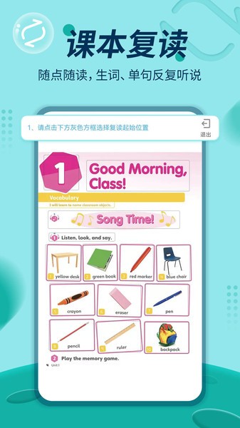 电子点读书支持复读,随点随读,生词、单句反复听说,强化记忆点