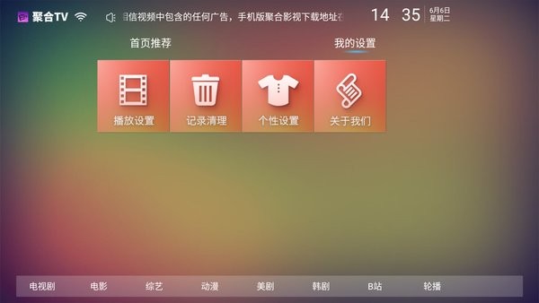 聚合tv是一款全新开发的自适应电视端+手机端的点播应用,软件界面简洁,最重要的是资源非常好,内置酷云路线资源,堪称极速播放。海量电视直播、高清视频尽在其中,更新及时,各种电影、电视剧、动漫应有尽有,画质高清,极速播放,为用户带来高清的视频播放体验。