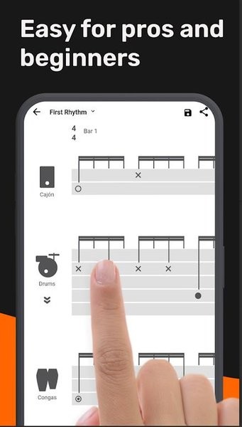 Drumap直观的乐谱创作者创作音乐,主要是打击乐,如桑巴乐队、行进乐队、鼓线、鼓槽等。这就像Musescore或Finale,但要容易得多。或者像Garageband一样,但更适合鼓手和打击乐手相互创造、分享和学习。