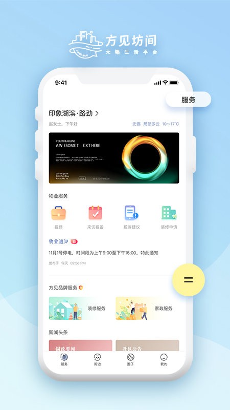 方见坊间app是为大家打造最美好的生活社区的服务软件,从每一个细节开始,都有着专业的人员处理,让大家快速的完成自己的各种问题上报,物业端可以做到及时处理,打造最温馨的社区,美好生活近在咫尺!