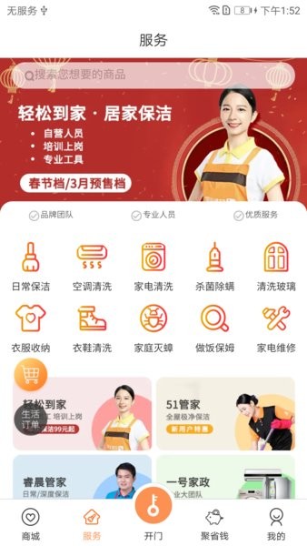 联享家门禁app不仅仅是一个单一的手机门禁管理软件,还提供了日常保洁、空调清洗、家电维修、做饭保姆等功能。有了它以后,以后拿出手机就可以进出小区了,门禁卡不再用随身携带;还可以在软件里面进行购物,送货上门更贴心。