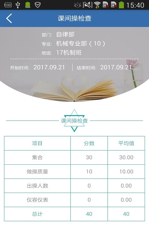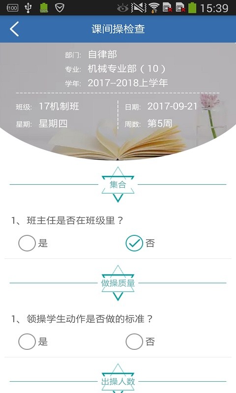 本app是用于集美职业技术学校的学生干部对学生的生活,纪律,宿舍卫生等情况进行管理。用来检查课间操、宿舍卫生, 宿舍安全隐患、宿舍学校违纪、班级卫生,晚自习、宿舍纪律等情况,发布学校通知,荣誉榜通知等的应用。