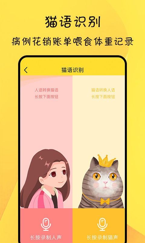 支持识别猫咪的语言,对猫咪的语言进行翻译给用户。