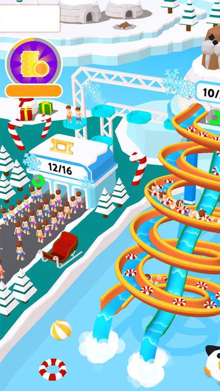 顾客们会自己进去玩耍,不需要你操心,你只需要改造你的游乐园和收取门票就可以了;不断的增加游乐园的收入,让来你游乐园中玩耍的人能够享受到更多福利,玩起来更开心;体验休闲的放置玩法,在水上乐园上建立你的娱乐中心,你可以选择不同的地方来建造乐园。