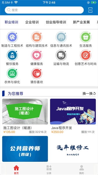 1.这里有多种不同的职业技能培训平台,用户可以在这里随时进行学习。