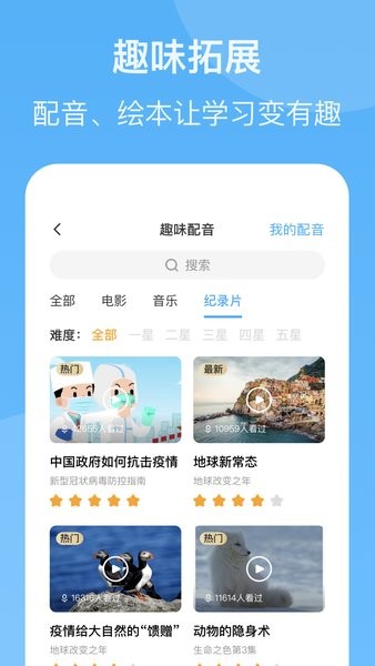 结合教学内容中的单词、句子、篇章等基础知识,让所有的用户都可以更轻松的在线学习非常全面的内容;