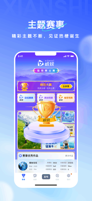 岘视最新版是提供短视频比赛的应用平台,带来多样精彩的主题赛事,随你自由参与,超多故事情节编辑,制作有创意内容的短视频,冲击排名,赢取奖金,海量热门短剧及时更新播放观看,还支持社交互动,一键分享畅聊,操作简单!