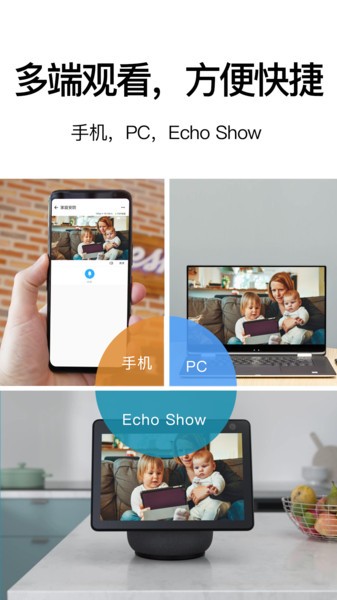 监控端自动采集图像和声音,查看端可实时收听,主动发起对话。